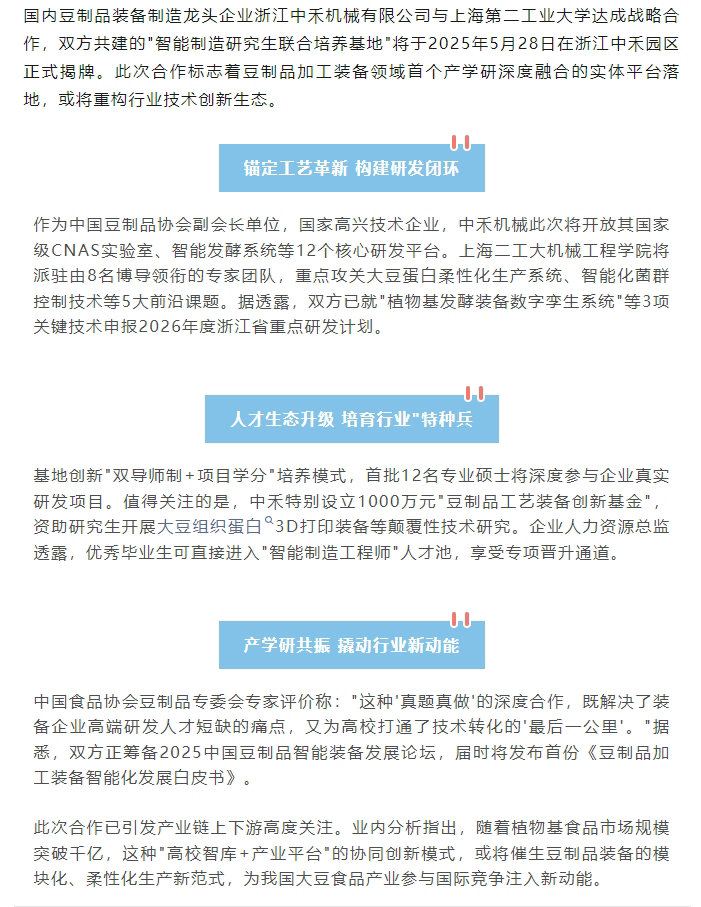 产教融合再添标杆!K8一触即发人生赢家机械联袂上海二工大打造豆制品装备研发新高地