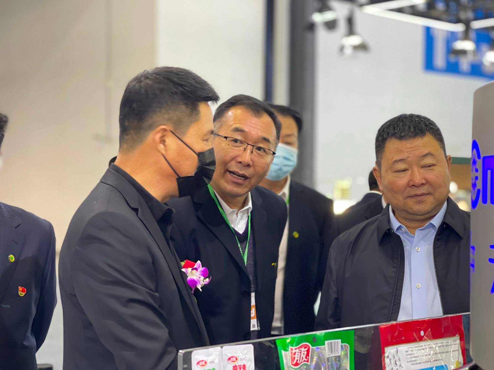 (执行董事王辉与原上海豆制品协会陈会长,张建秋秘书长、上海汉康食品周汉康董事长合照留念)